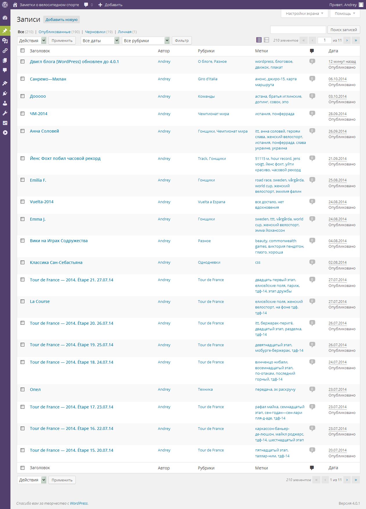 К слову говоря, блог велосипедный уже три года работает на CMS, как раз в декабре 2011 я перевел его на wordpress.